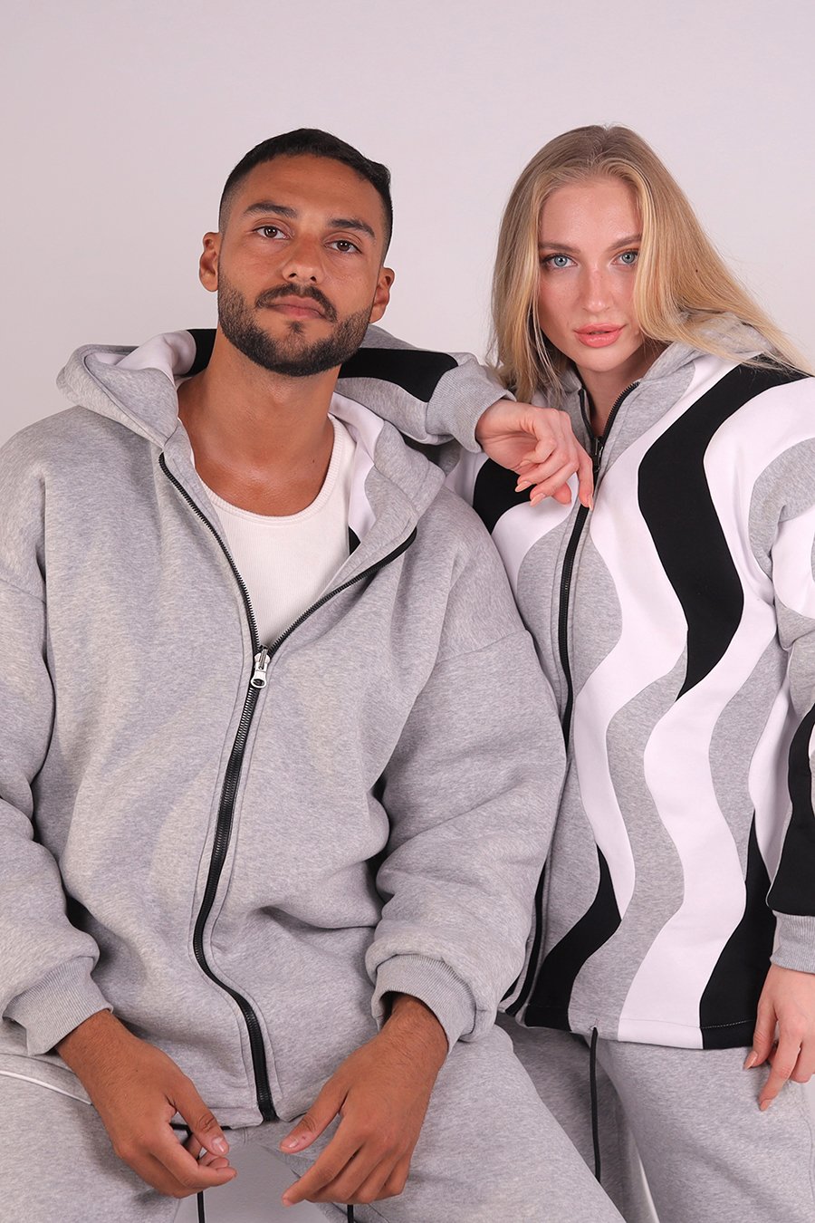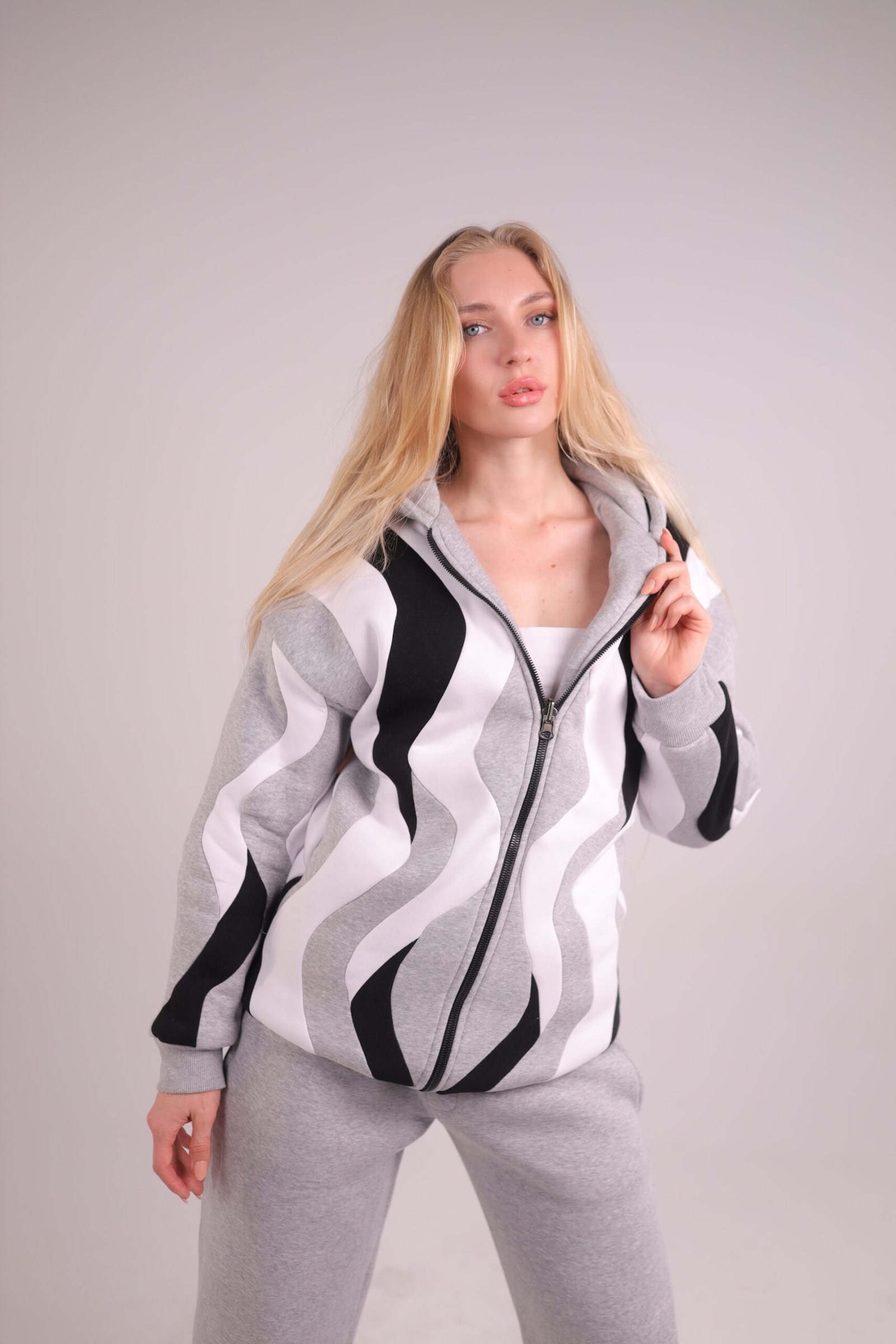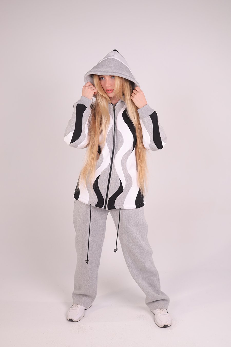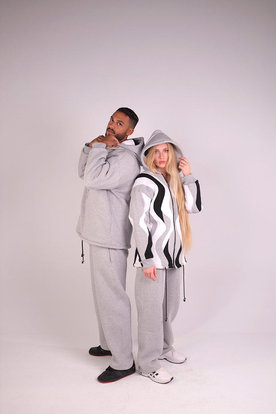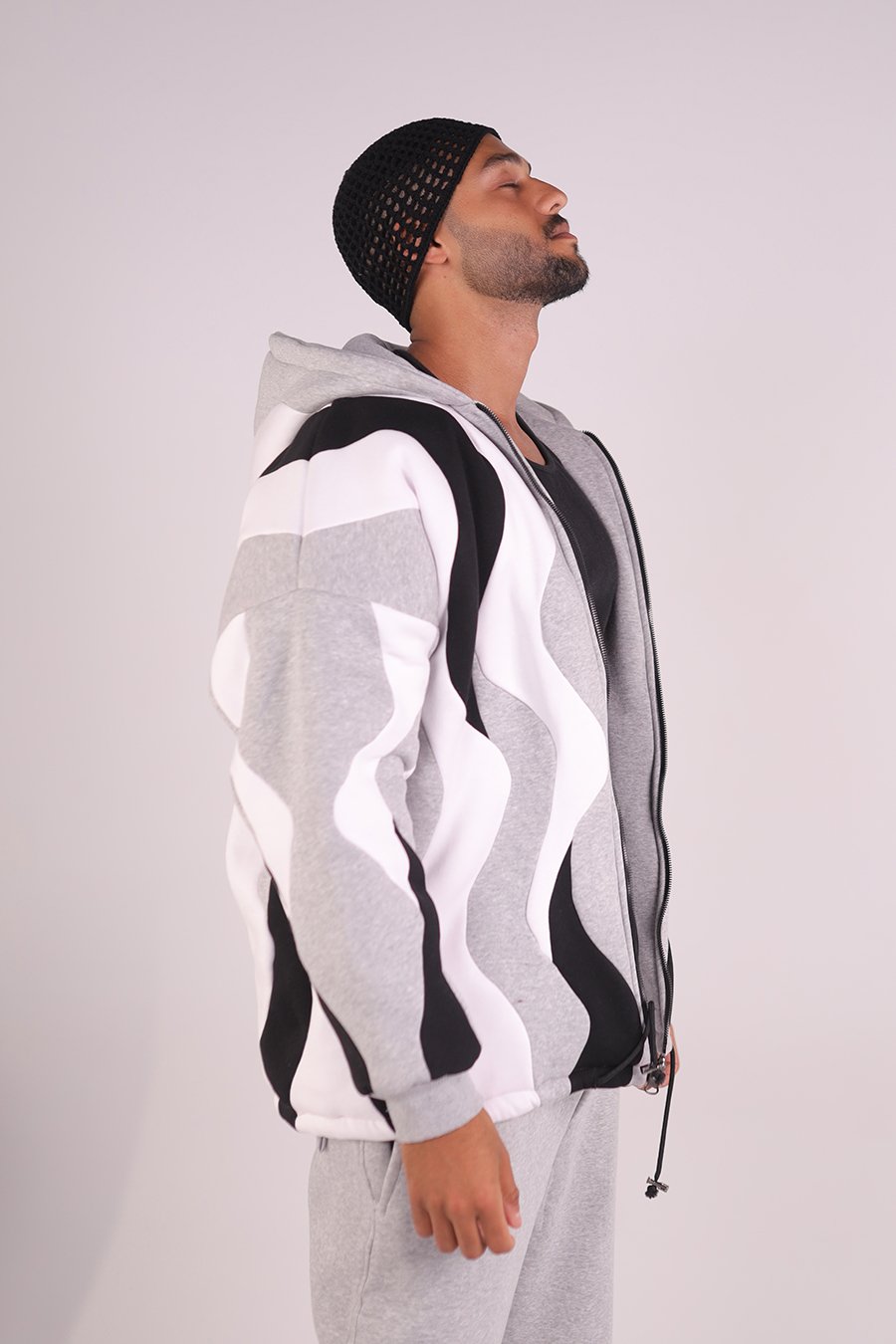 Handmade double-face hoodie in pure Uzbek cotton. Calm tones of white, grey, and black — where craftsmanship meets comfort.
